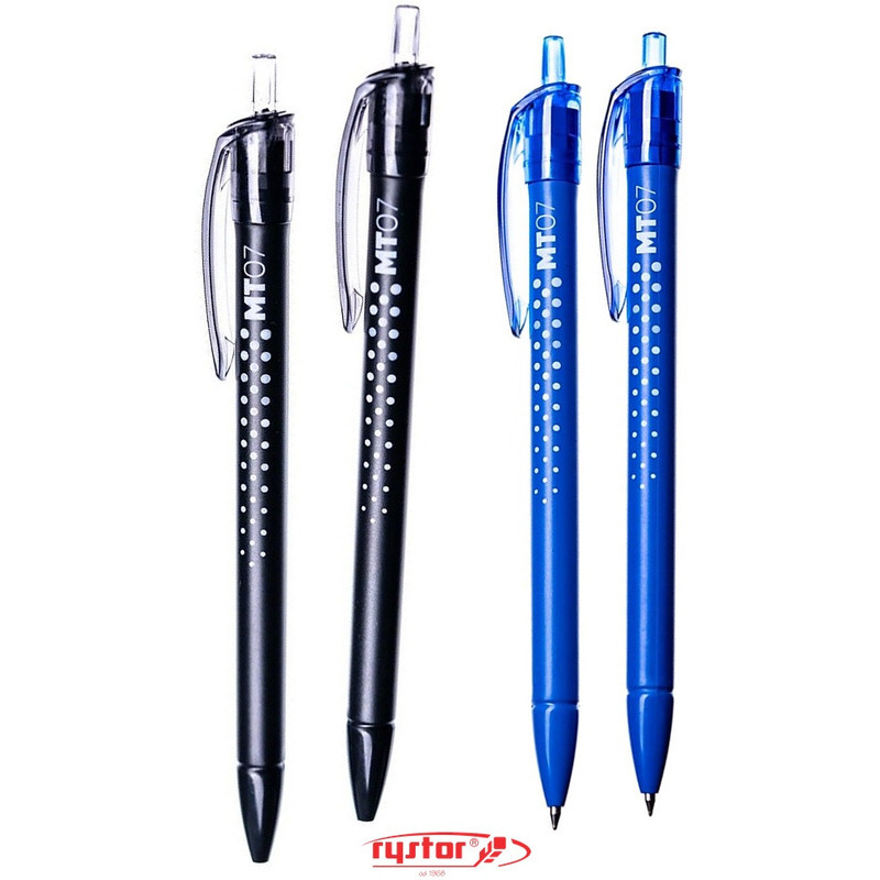 Odkryj niezawodność i precyzję pisania z długopisem Rystor MT07! Ten automatyczny długopis gwarantuje gładkie i łatwe pisania dzięki zastosowaniu tuszu olejowego, który nie rozmazuje się i nie blaknie. Średnica kulki wynosząca 0,7 mm pozwala na dokładne i precyzyjne kreślenie, a długość linii pisania sięga aż 800 metrów! Kolor obudowy zawsze odpowiada kolorowi tuszu, więc z łatwością rozpoznasz, który długopis trzymasz w ręce. W ofercie dostępny jest w kolorze czarnym oraz niebieskim. Długopis Rystor MT07 to produkt polskiej firmy Rystor, która od 1968 roku dostarcza wysokiej jakości przybory do pisania i kreślenia, łącząc najnowsze technologie z wieloletnim doświadczeniem. Kupując produkty marki Rystor, wspierasz rodzimy producenta i korzystasz z artykułów, które pomagają w codziennej pracy, nauce i twórczych uniesieniach. Długopis sprzedawany jest pojedynczo.