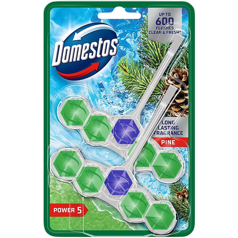 Czystość, świeżość i bezpieczeństwo – to wszystko gwarantuje kostka toaletowa Domestos Power 5. Ten rewolucyjny produkt, narodzony w 1929 roku w Wielkiej Brytanii, dziś jest dostępny na całym świecie, ciesząc się niezmienną popularnością. Wyjątkowo wydajna zawieszka do WC daje aż 300 spłukań bez utraty jakości, uwalniając za każdym razem gęstą pianę, która doskonale czyści i chroni przed osadzającym się kamieniem. Po każdym użyciu, muszla klozetowa błyszczy czystością, a cała łazienka wypełnia się intensywnym, długotrwałym zapachem sosny. W opakowaniu znajdują się dwie zawieszki o wadze 50g każda. Wybór Domestos Power 5 to pewność czystości i świeżości na długi czas.